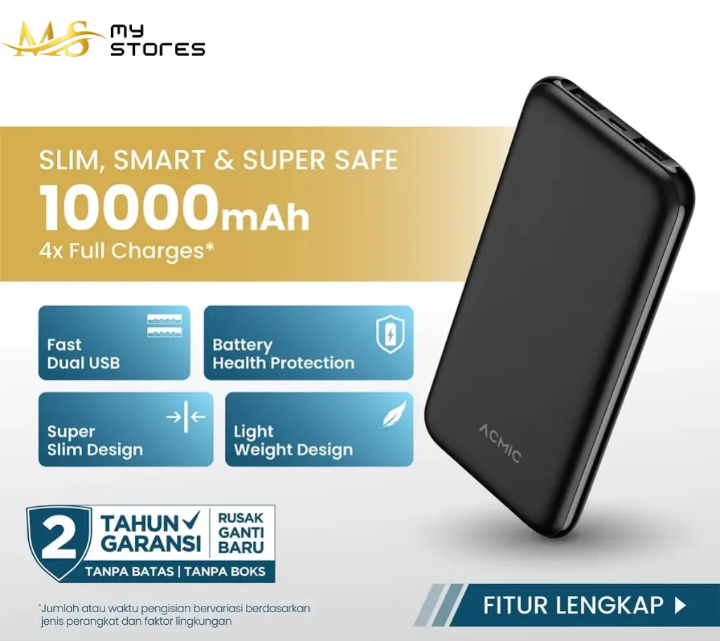 ACMIC PowerSlim 10000mAh Slim PowerBank 2A Fast Charge