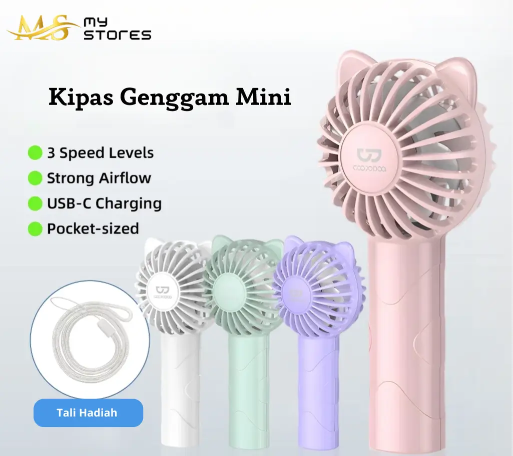 Kecil dan ringan, nyaman digunakan secara genggam maupun di meja. Mudah dibawa dan membuatmu tetap segar kapan saja. Tersedia dalam hitam, putih, dan ungu.Kipas mini ini juga dilengkapi alas yang dapat digunakan sebagai penyangga ponsel, memadukan kepraktisan dengan desain yang stylish, menjadikan pendinginan portabel pengalaman yang canggih. - Tingkat Kecepatan Angin